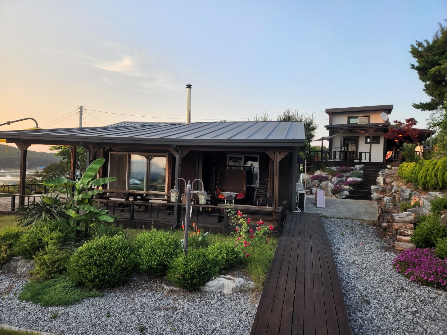 정원이 넓은데 독채 두채만 있어서 주차장은 넓게 사용하실 수 있어서 좋아요! 부엌에 칼, 도마, 그릇들이 모두 있어서 편했어요~  처음에 네비로 안내받을 때 지도 보며 쉽사리 찾아지는 곳은 아니어서 주인아주머님께 전화하고 안내받으시는 게 좋을 것 같아요!
