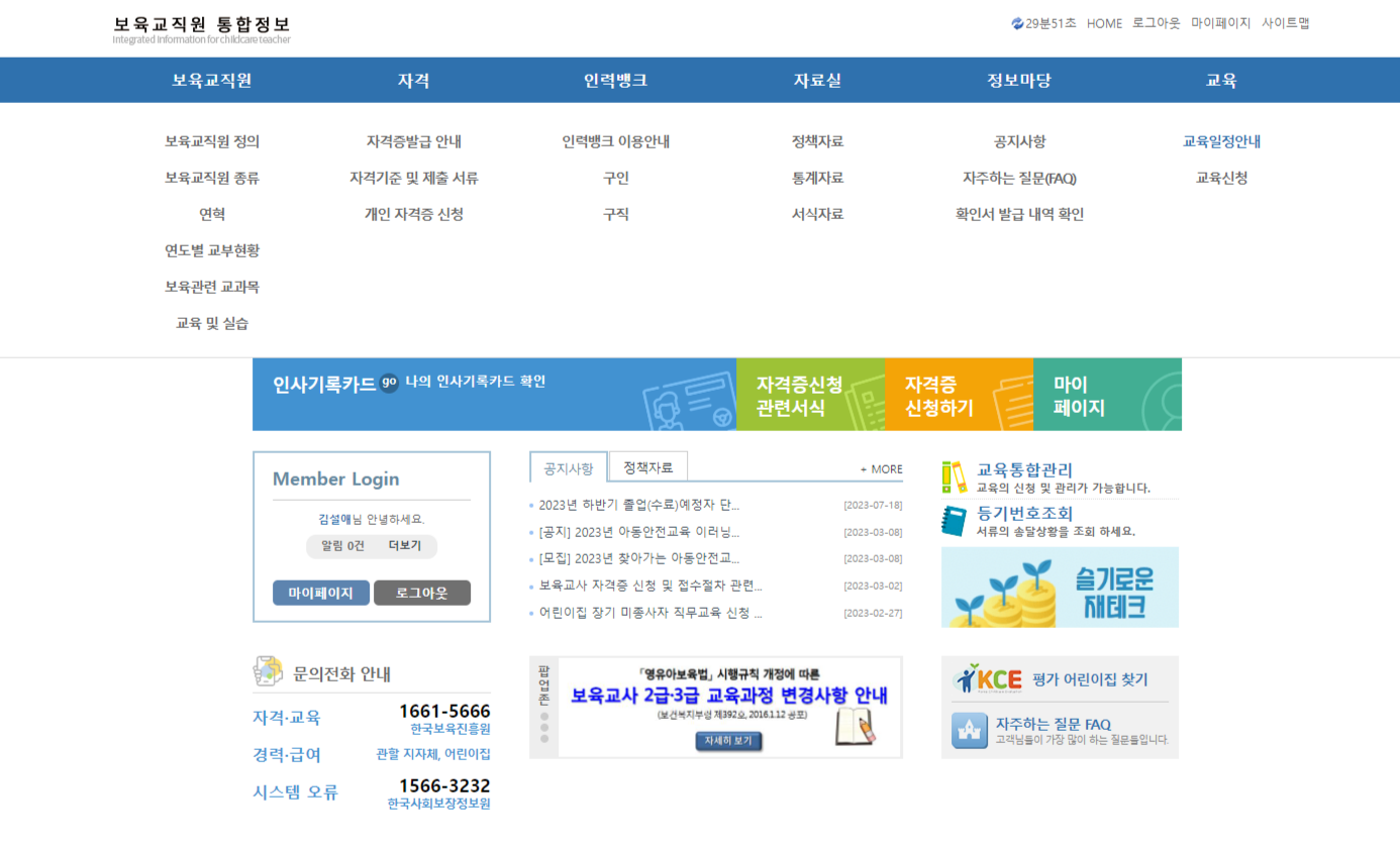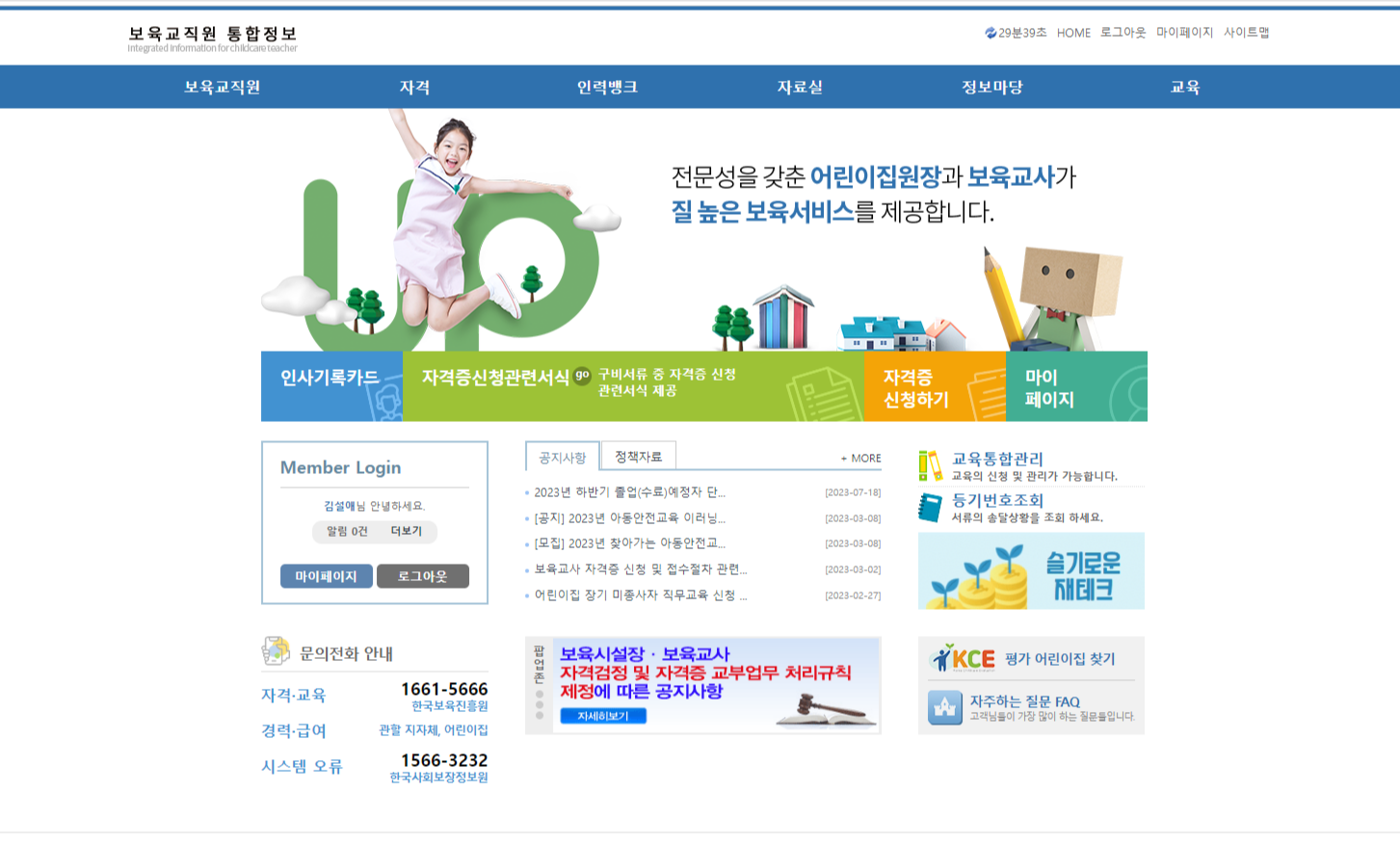 - 보육교직원 통합정보 홈페이지에 들어간다.